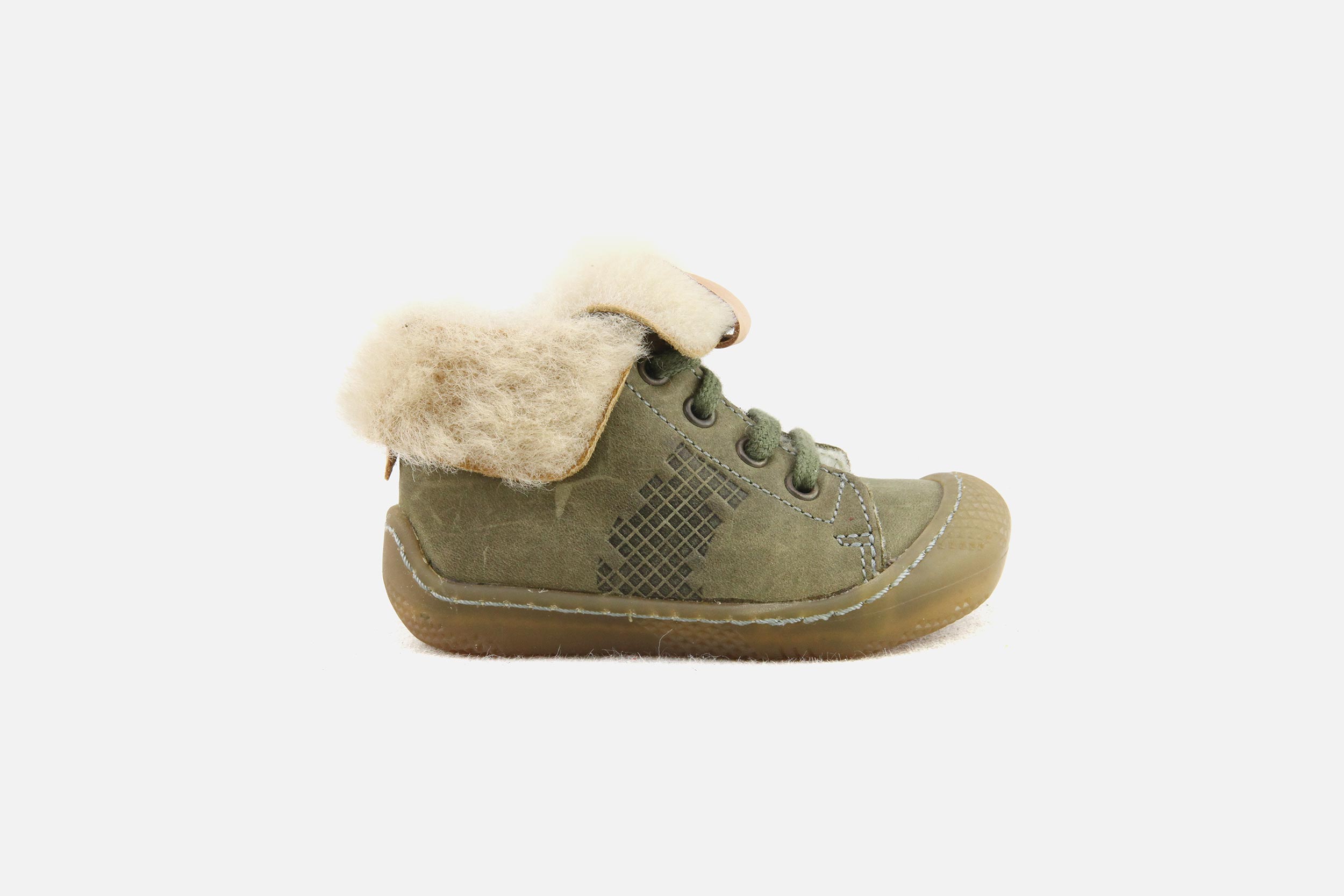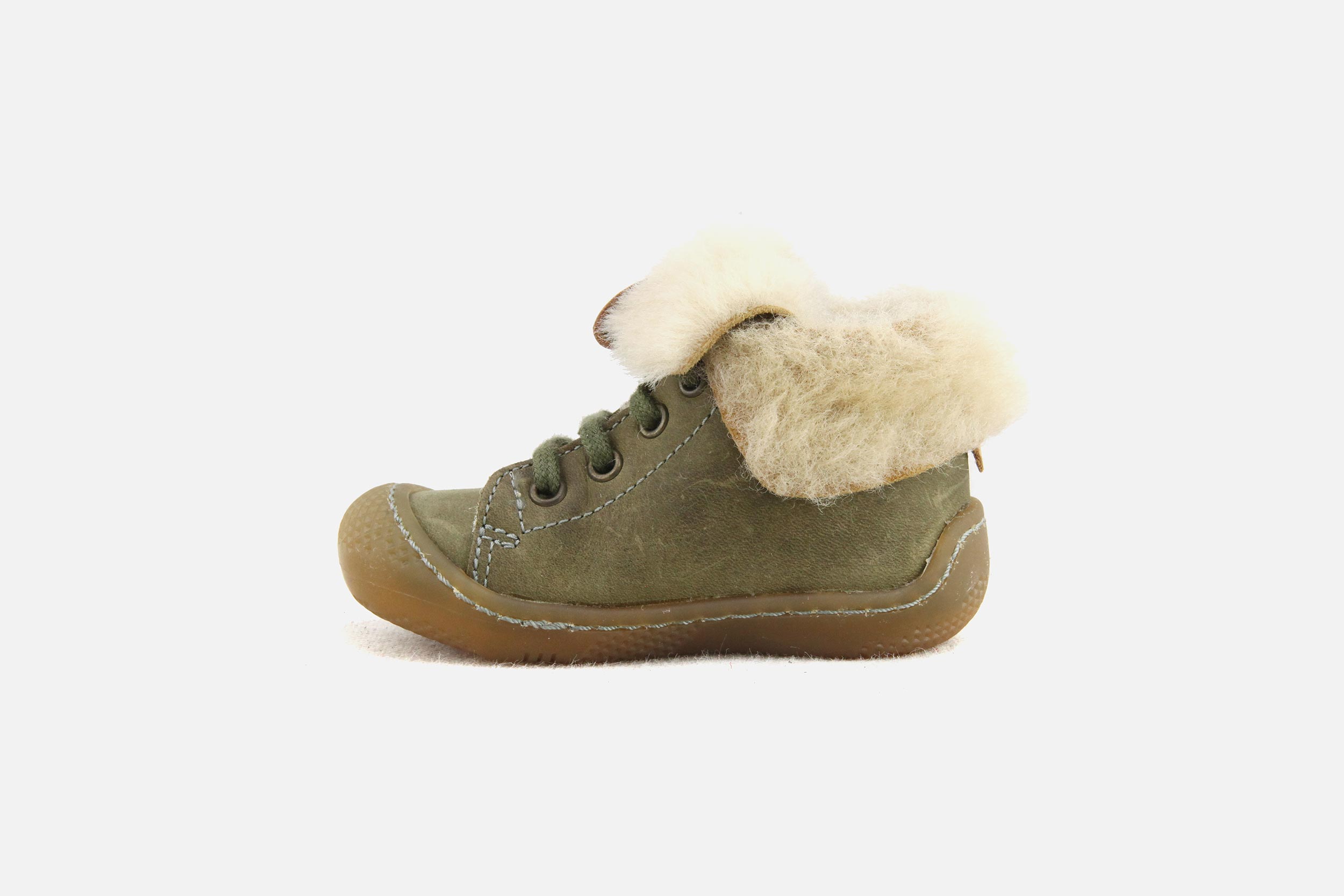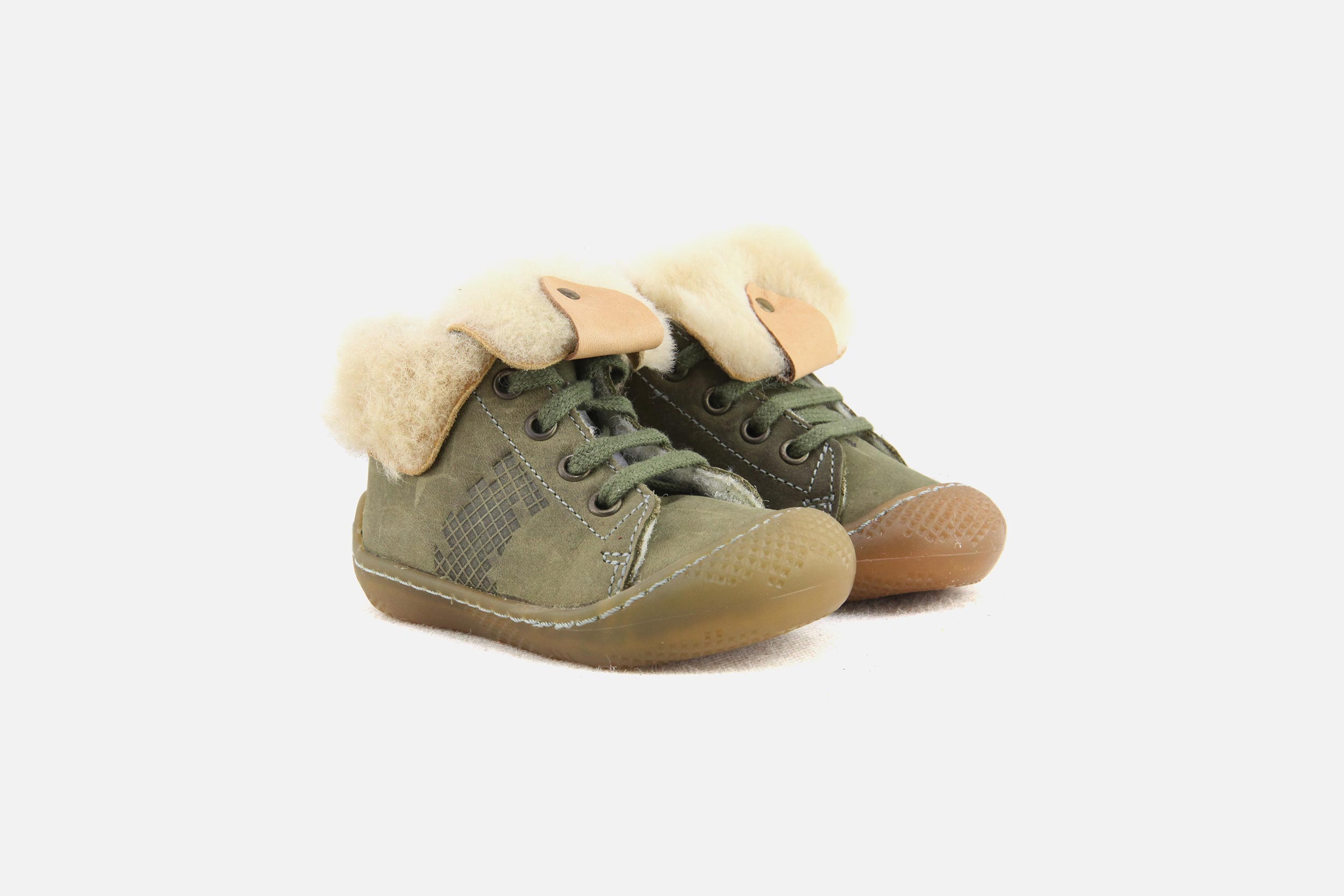 Bottines à lacets Babybotte kaki en daim - nubuck