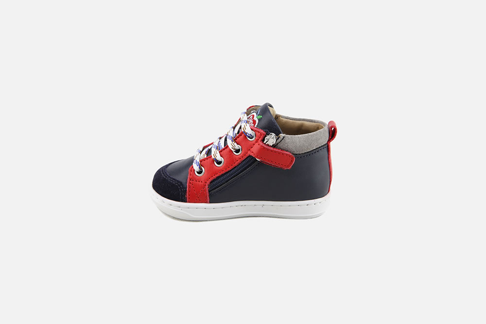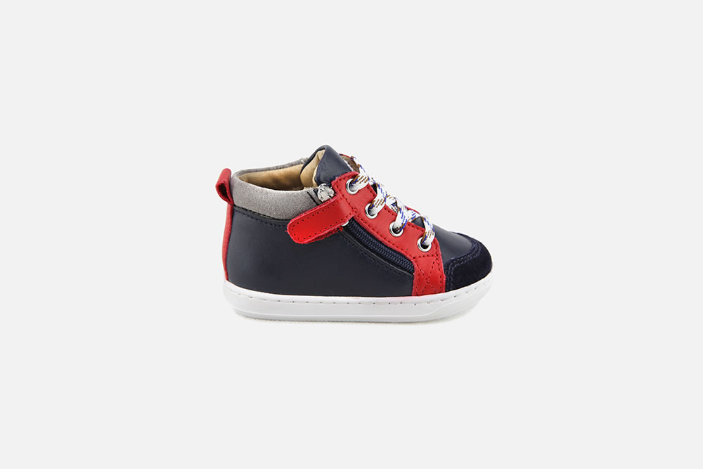 BOUBA, une jolie bottine conçue pour accompagner les enfants dans leurs premières aventures. Cette chaussures s'enfile et se retire très facilement grâce à ses fermetures éclair présentes sur ses deux côtés.