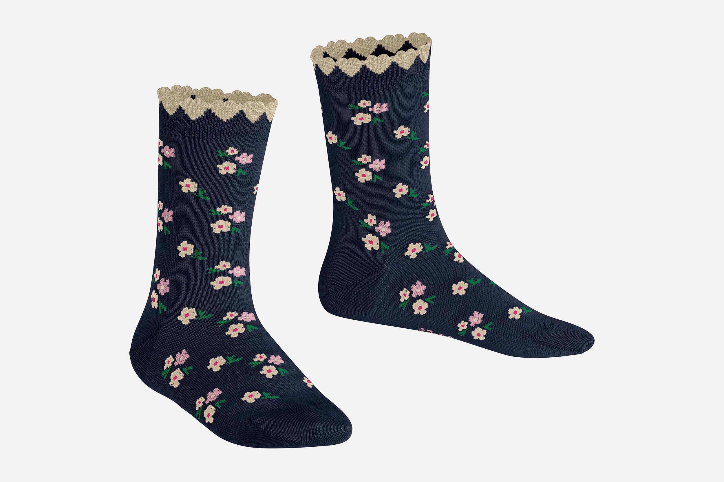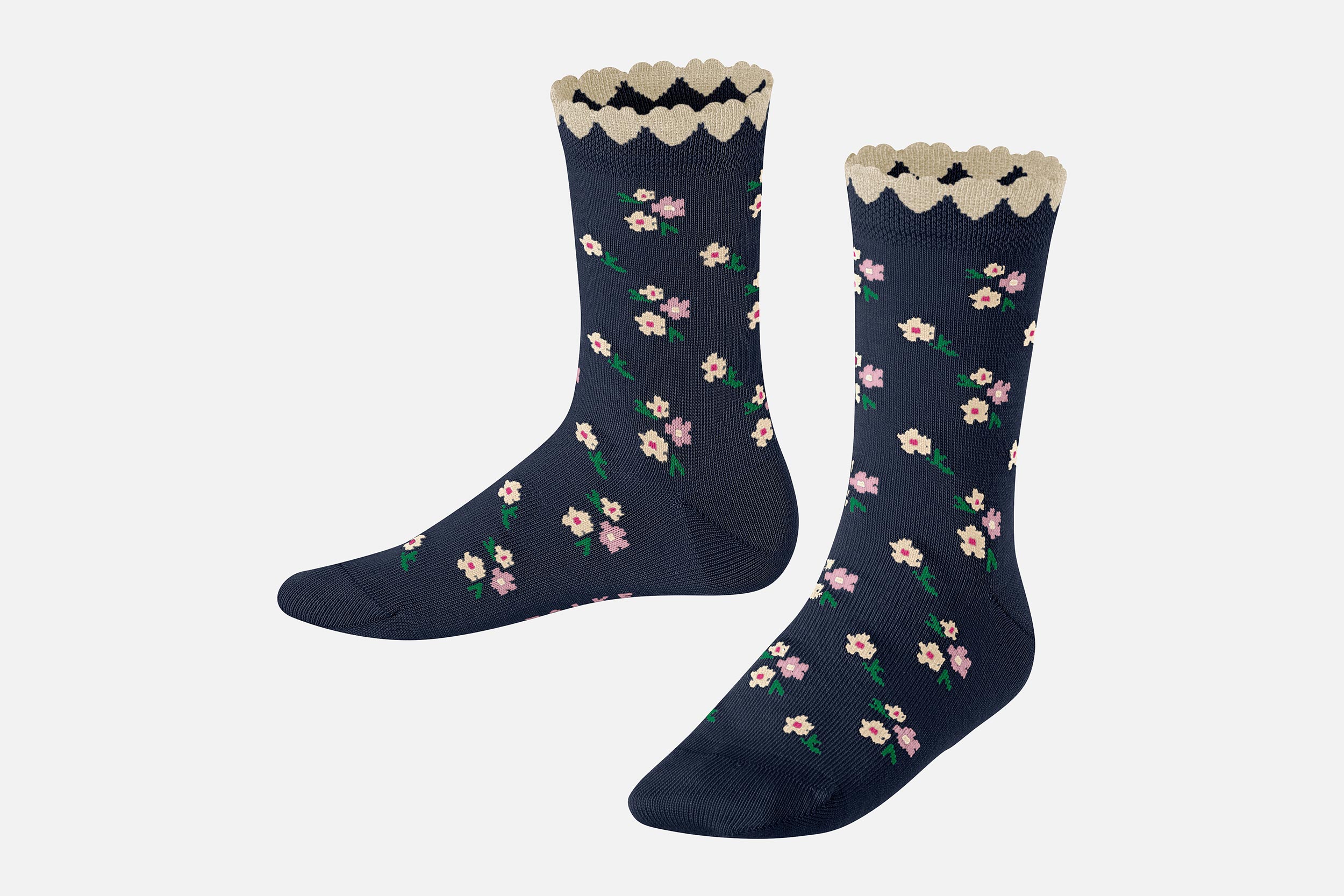 Un design girly et romantique et un grand confort s'unissent dans ce modèle. Ces chaussettes pour enfants en coton durable et doux pour la peau séduisent par leur design particulier et élégant présentant des motifs floraux discrets et un bord amusant en forme de petits cœurs. Le coton durable et doux pour la peau et la coupe parfaite FALKE garantissent le confort de port.