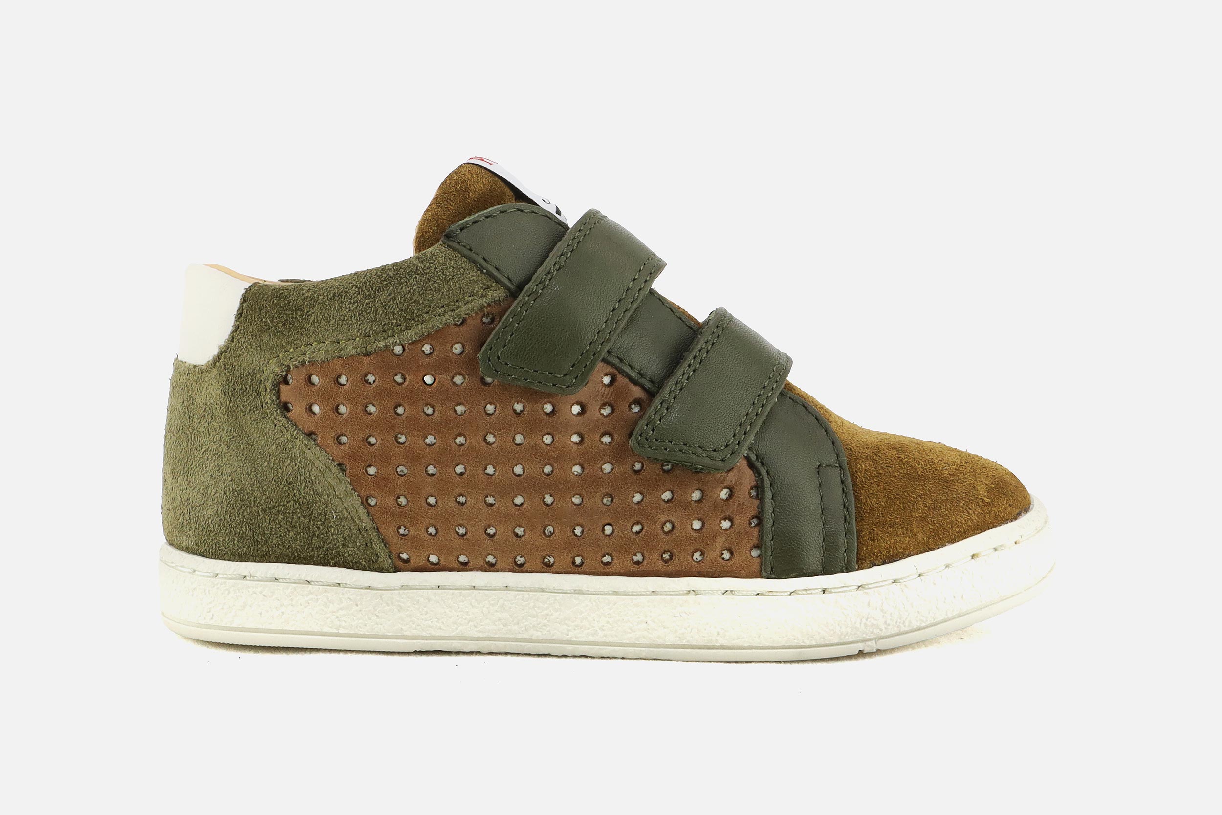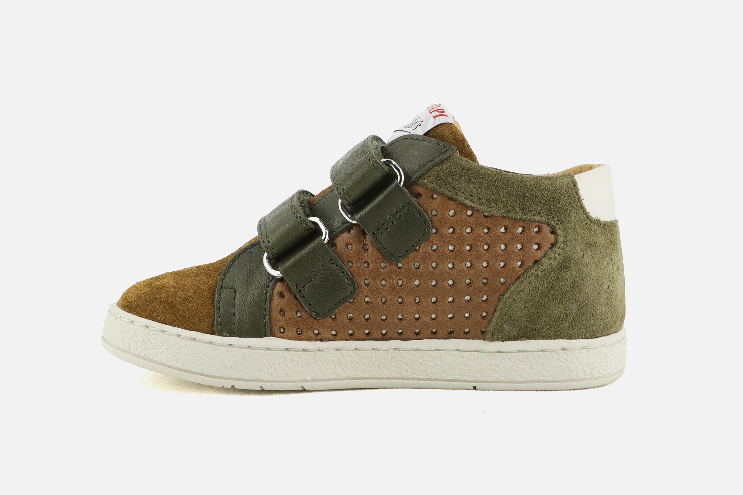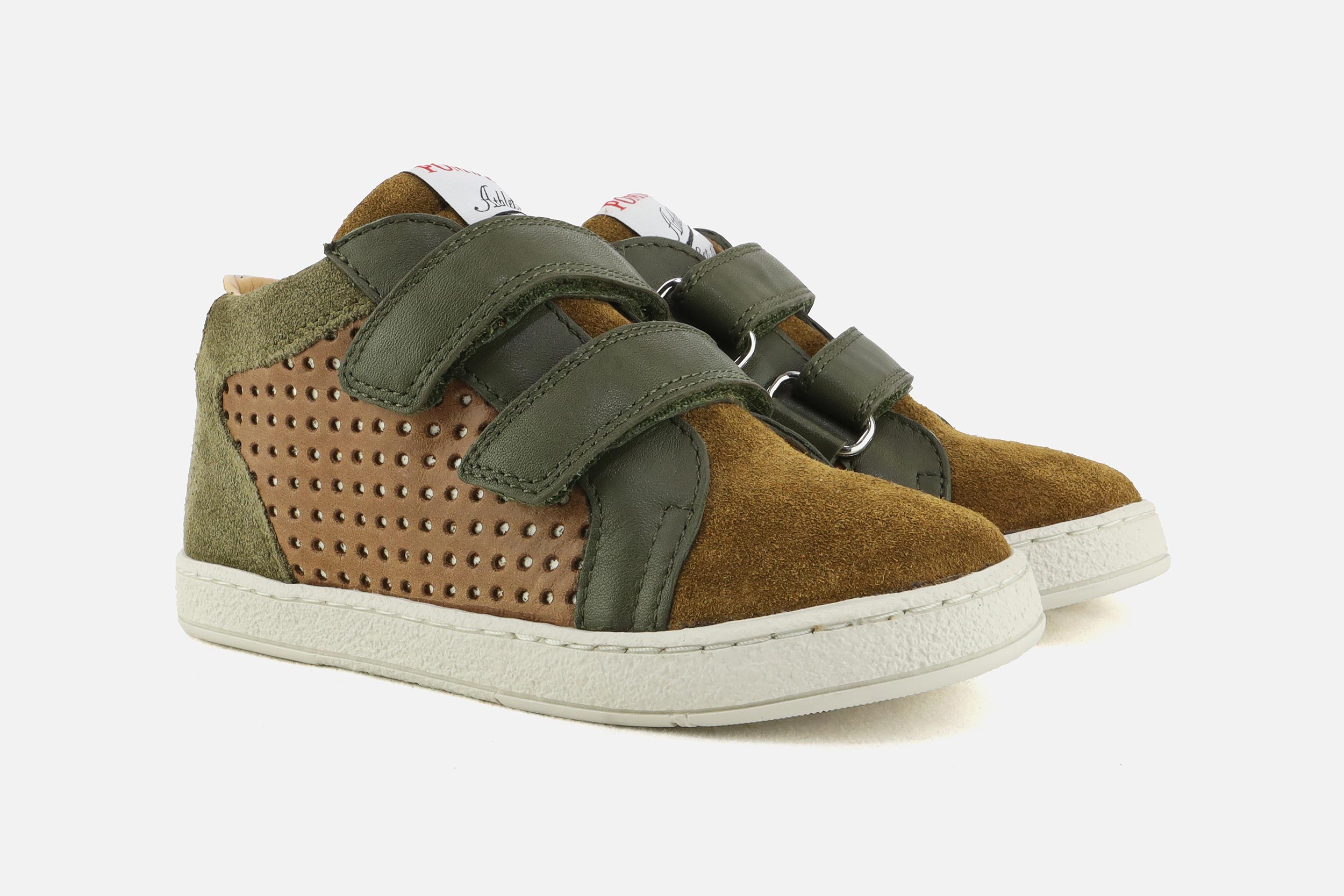 Bottines à scratch Pom d'Api kaki en daim - nubuck