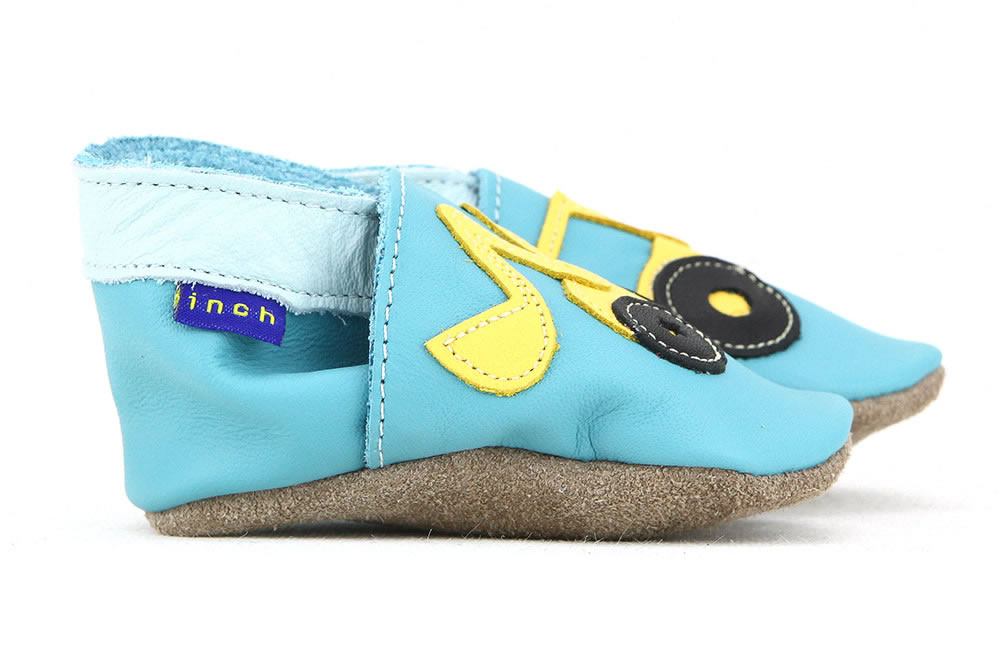 L’histoire de la marque Inch Blue commence en 1999, lorsque Rhiannon Owen, entrepreneuse dynamique et créative, commence à fabriquer des chaussons pour bébé dans sa cuisine ! En 2004, la marque a déjà bien grandi. Devenue référence pour les parents et les boutiques de chaussures pour enfant, ces adorables chaussons en cuir souple naturel sont fabriqués à la main en Grande-Bretagne et sont certifiés sans chrome. La collection Inch Blue accueille régulièrement de nouveaux modèles, qui enchanteront les petits pieds de bébés, de 0 à 24 mois. Une excellente idée cadeau !