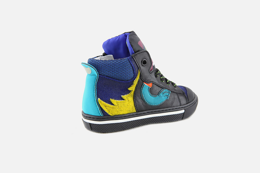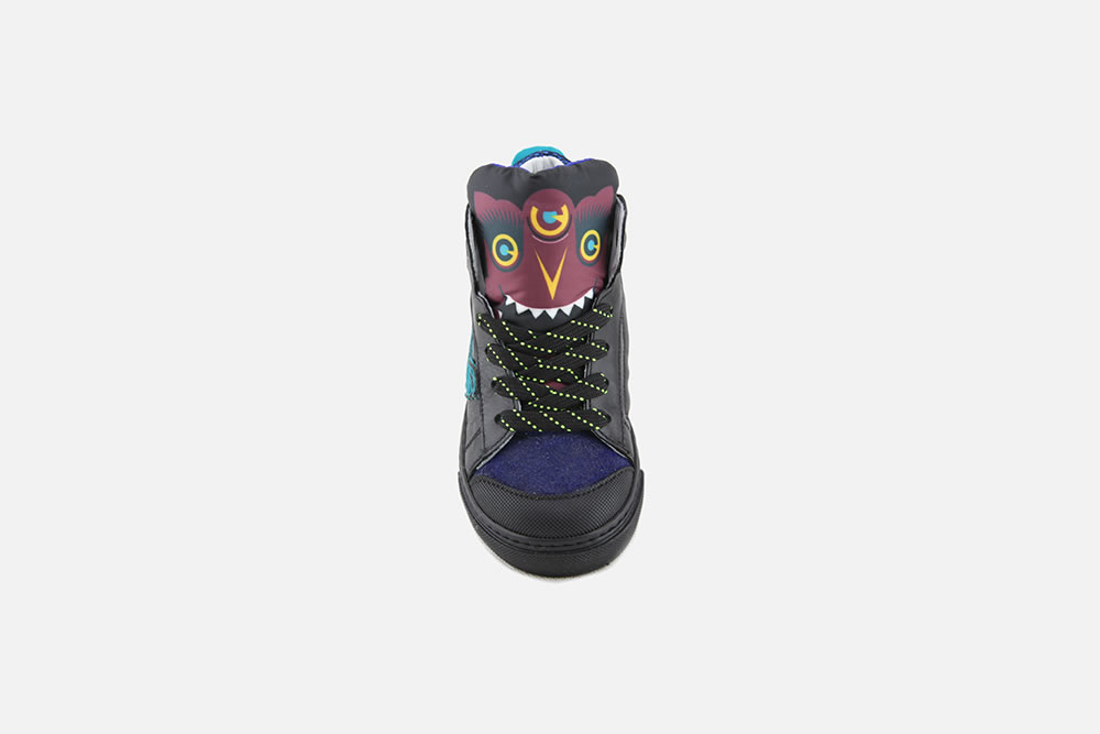 - Petits (et grands) détails omniprésents : le gentil monstre sur la languette, les décorations sur les flancs, le détail réfléchissant sur le contrefort, et même une petite illustration sur le revers de la languette ! Sauriez-vous en trouver d'autres ?