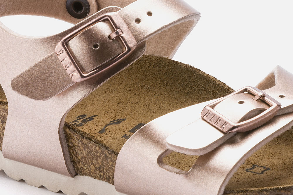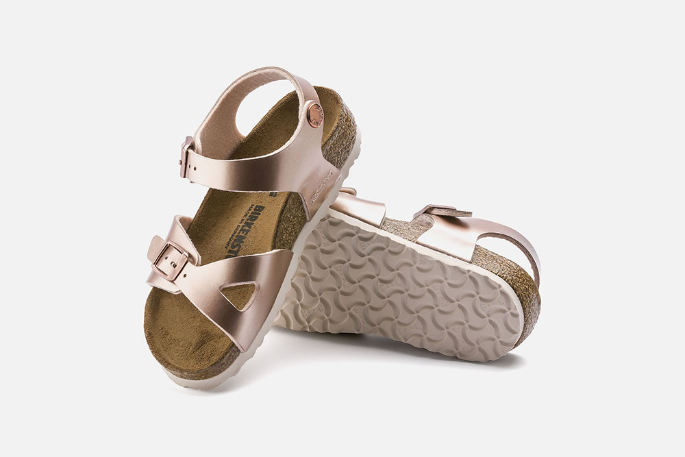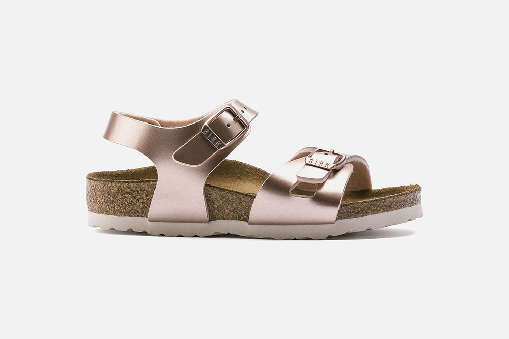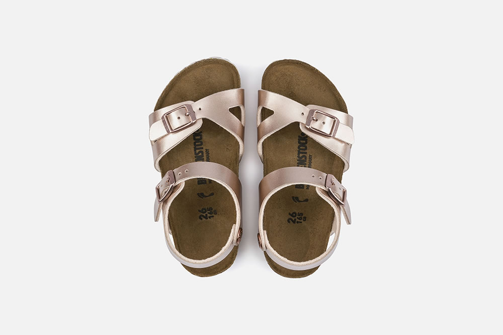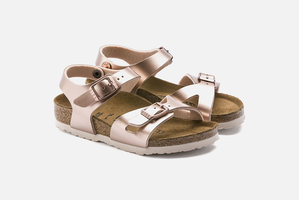 RIO, LA sandale pour fille de Birkenstock, ici présentée en version rose métal ! Avec ses deux brides équipées d’une boucle ardillon et sa semelle montée sur un lit de pied anatomique en liège et latex, le pied de l’enfant est efficacement maintenu, pour lui garantir une stabilité optimale. Pratiques et très confortables, ces nu-pieds se portent aussi bien à l'intérieur qu'à l’extérieur.