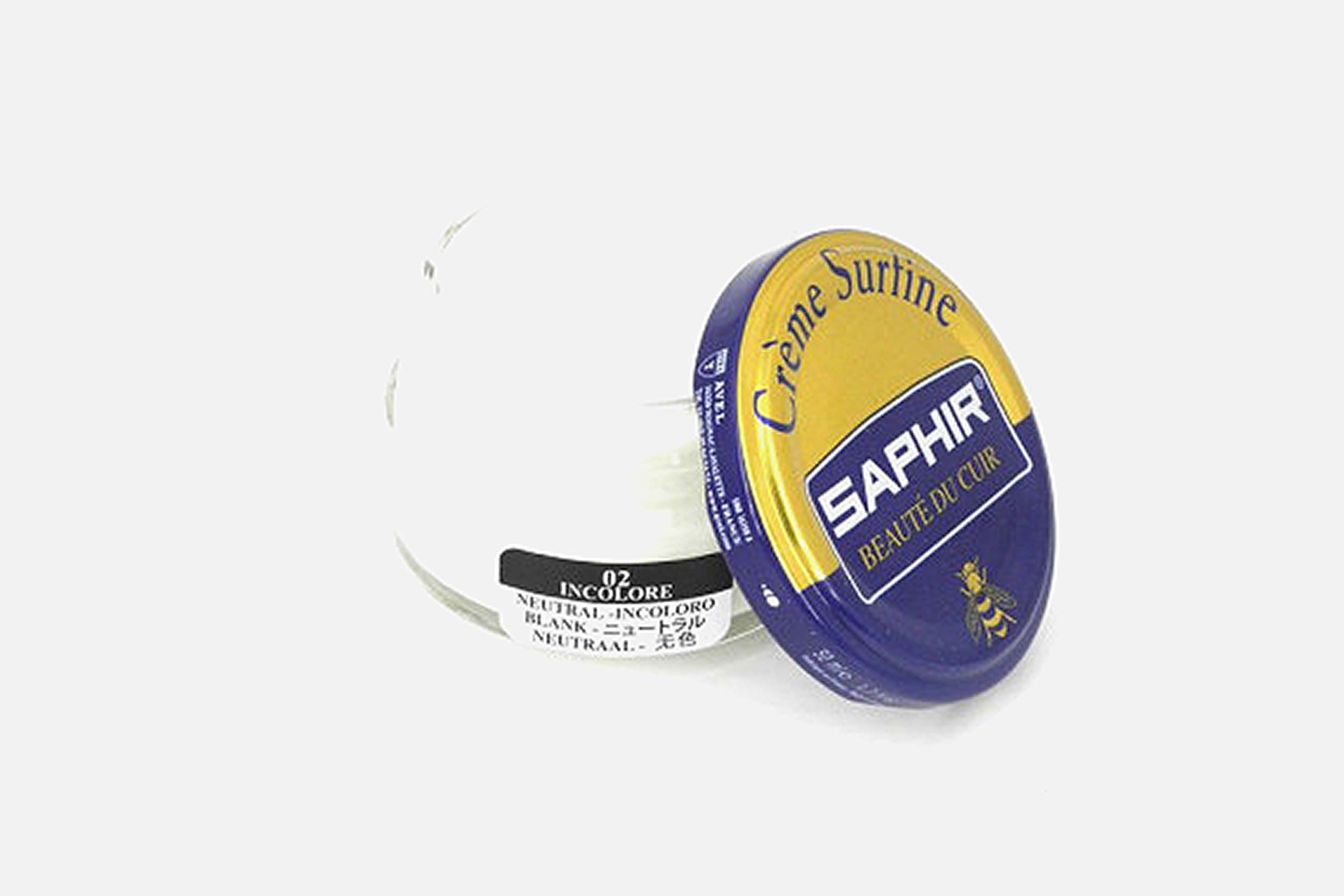 Saphir's Crème surfine is made with beeswax and sweet almond oil, to moisture and nourish in depth the leather, by smoothening it.