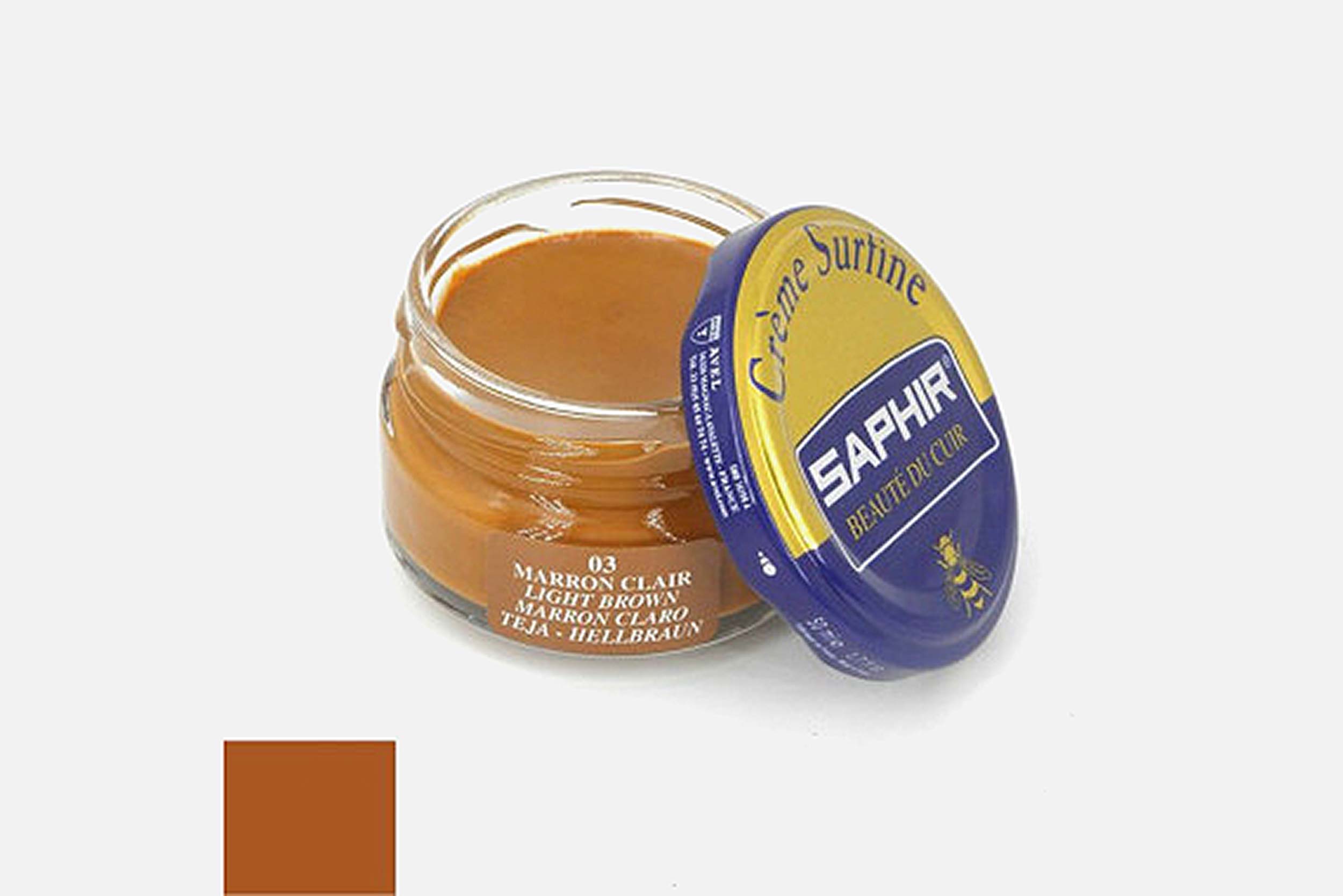 Saphir's Crème surfine is made with beeswax and sweet almond oil, to moisture and nourish in depth the leather, by smoothening it.