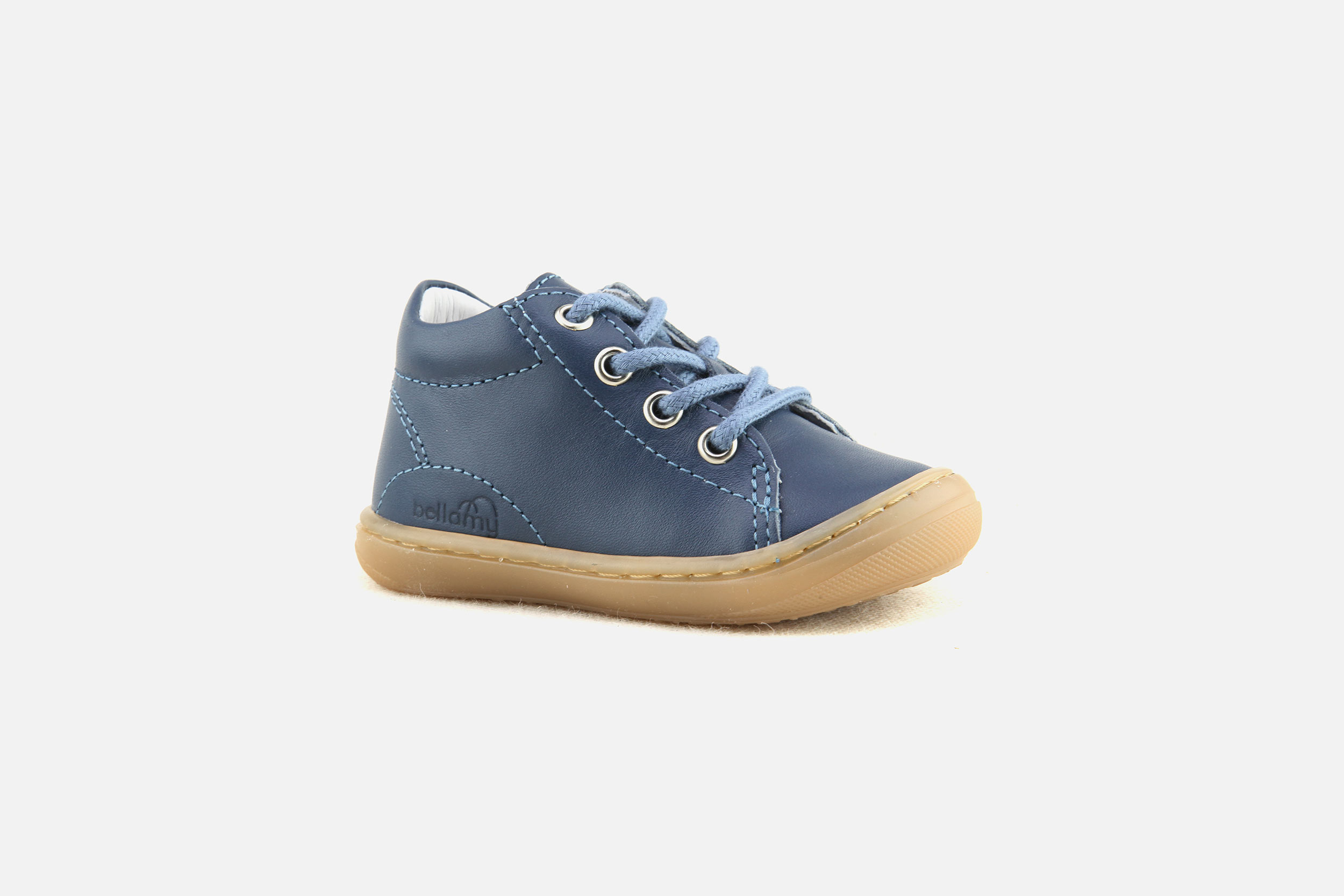 Bellamy manufactures well-designed kids’ shoes: the rubber toecaps strengthen shoes front to ensure them a greater longevity faced with kids’ adventures would live with them. A leather piped seam closed to the malleolus allows to hold on softly toddlers’ plump feet. Bellamy takes also a good care of kids’ feet indoors with its very large range of Bellamy slippers .