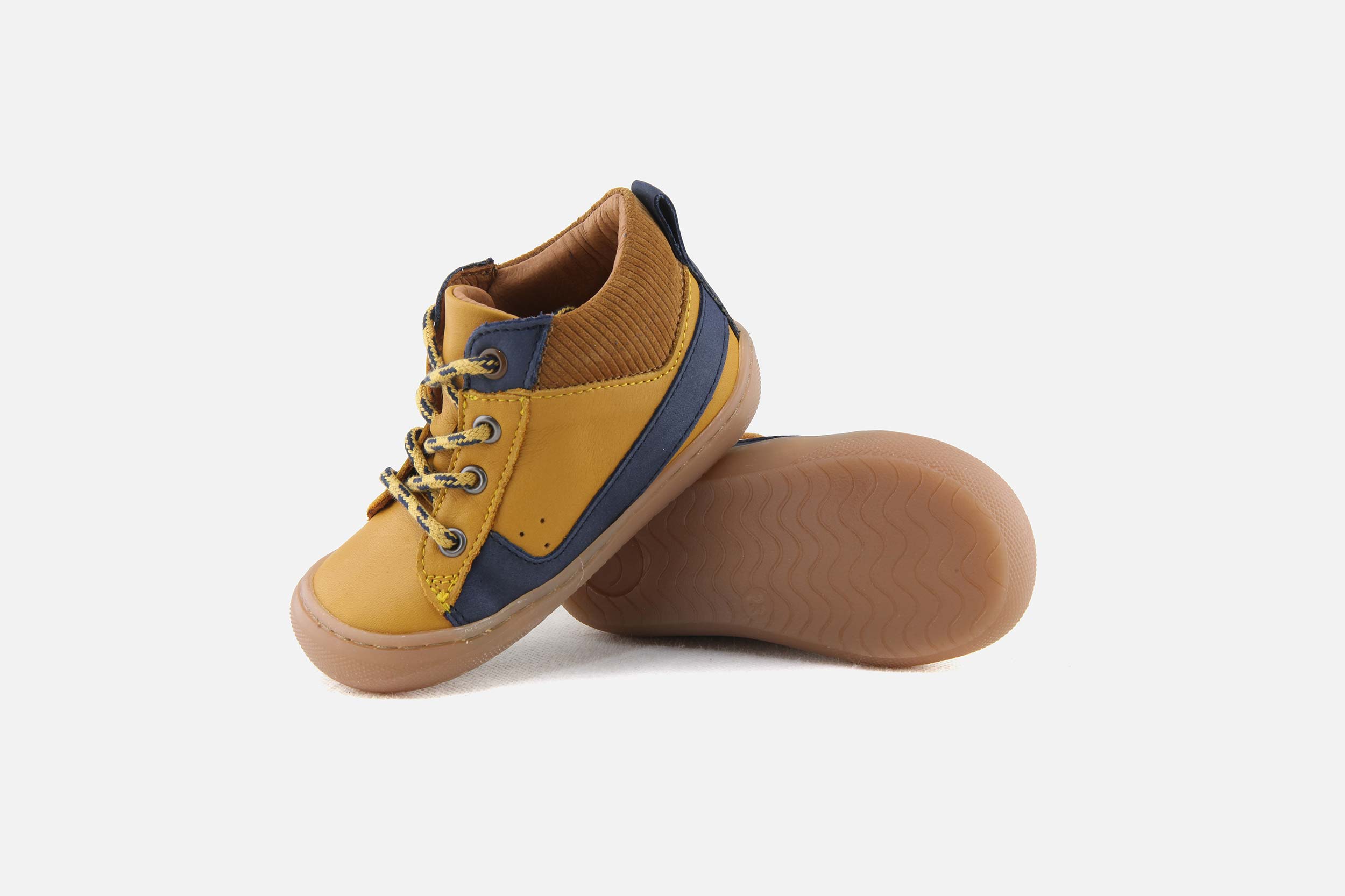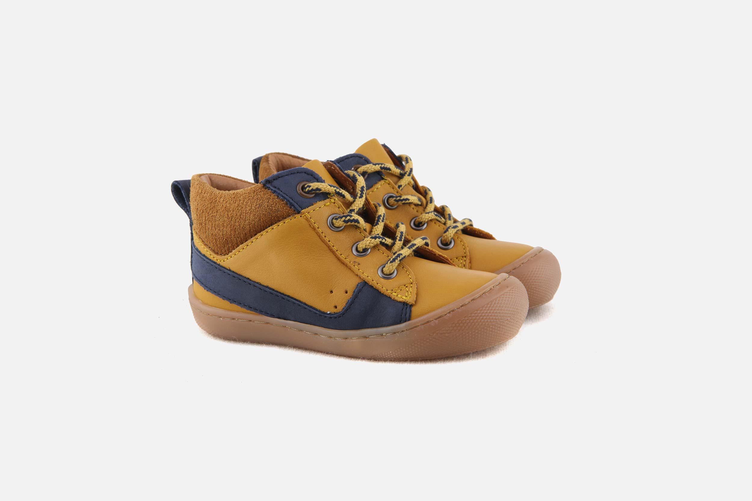 Bellamy manufactures well-designed kids’ shoes: the rubber toecaps strengthen shoes front to ensure them a greater longevity faced with kids’ adventures would live with them. A leather piped seam closed to the malleolus allows to hold on softly toddlers’ plump feet. Bellamy takes also a good care of kids’ feet indoors with its very large range of Bellamy slippers .